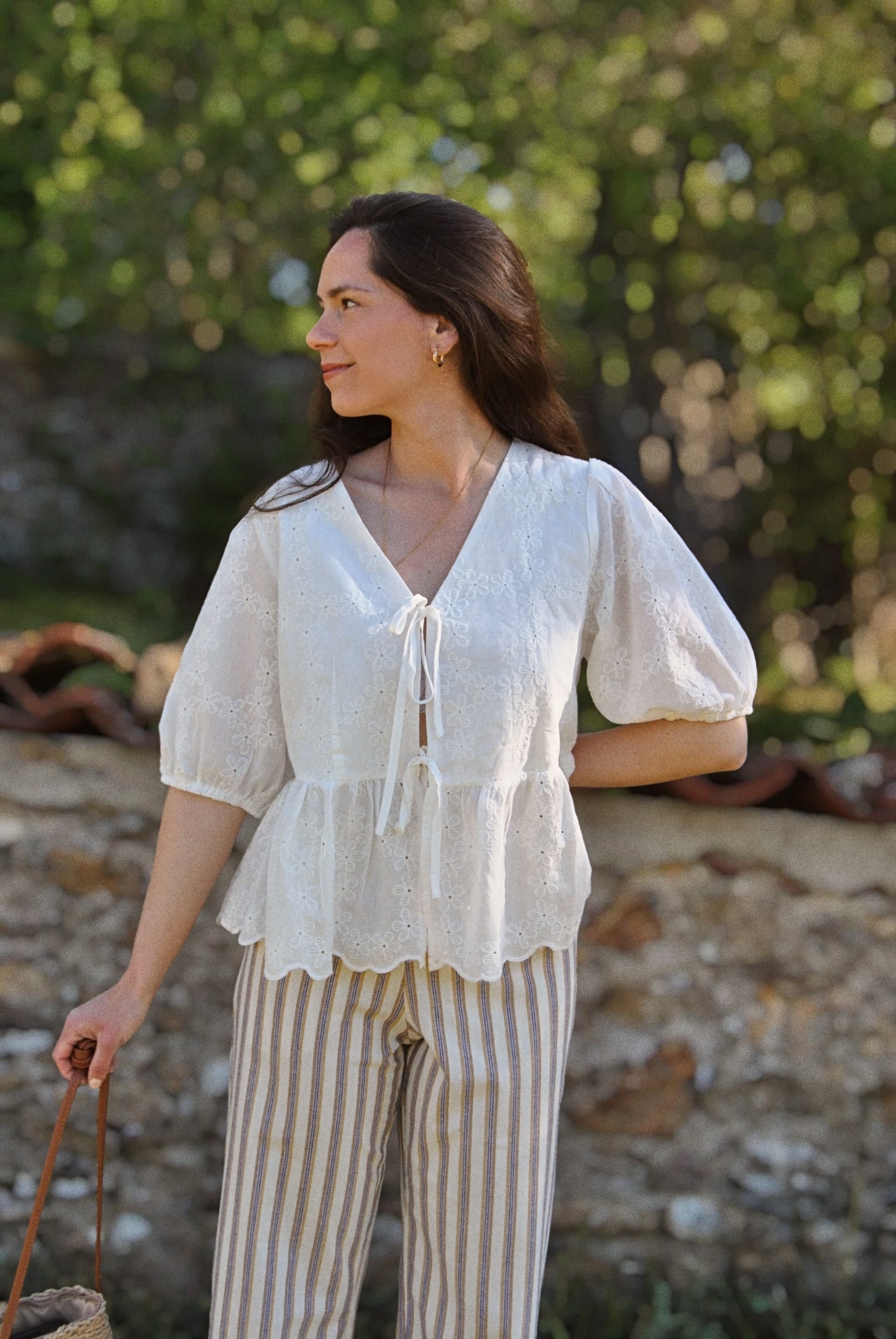 Blouse blanche à nouer sur le devant